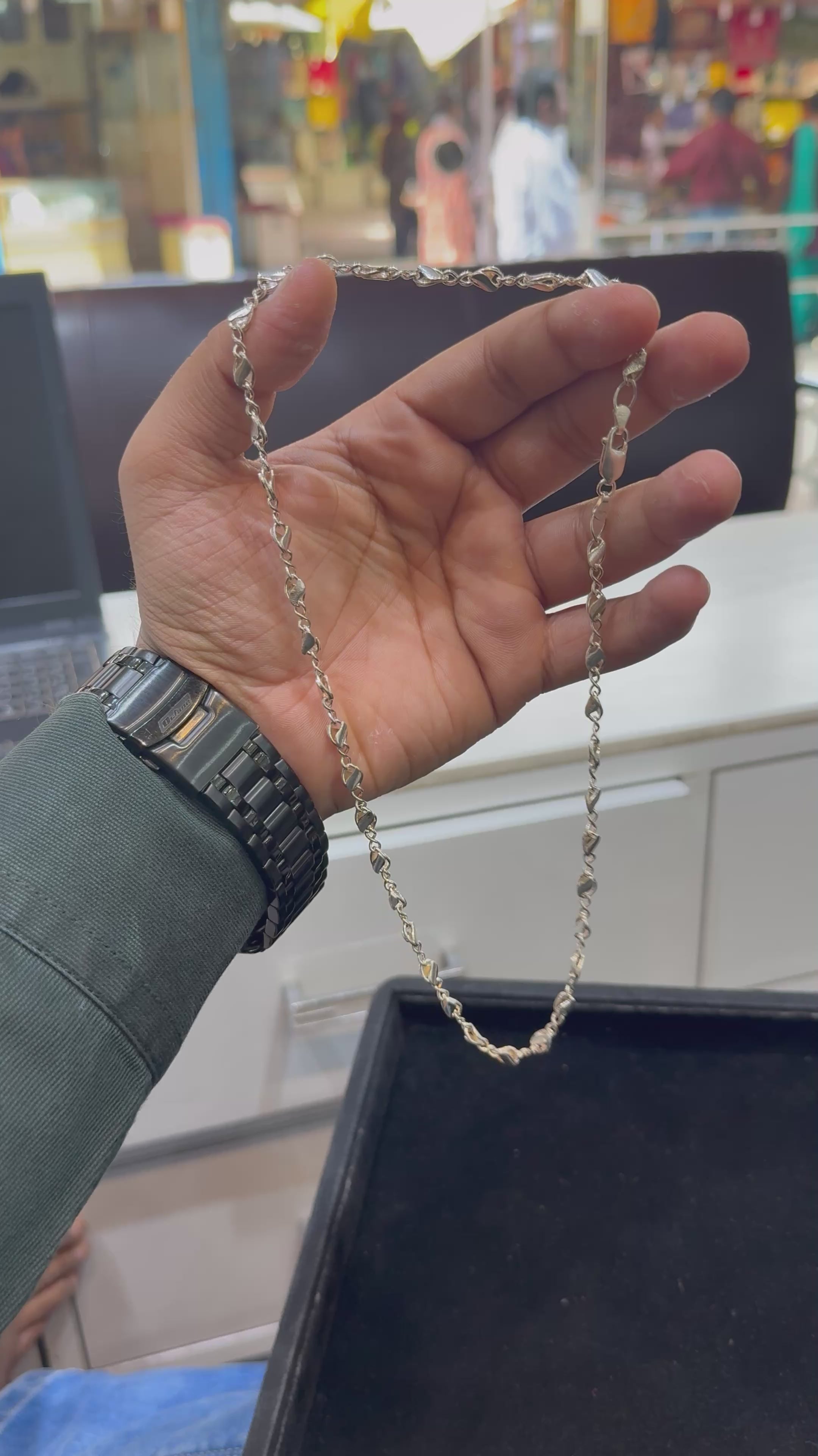 The Box Chain is crafted from 92.5% sterling silver, designed for daily wear with durability that allows for permanent use. Its robust joints ensure reliable strength, providing a streamlined appearance suitable for various occasions. This chain combines versatility with long-lasting quality, making it an essential accessory.